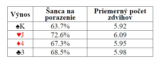 Pozrime sa aj na jedno rozdanie z mnohých rozdaní zo simulácie,v ktorých sa kárový výnos ukáže ako správna voľba: